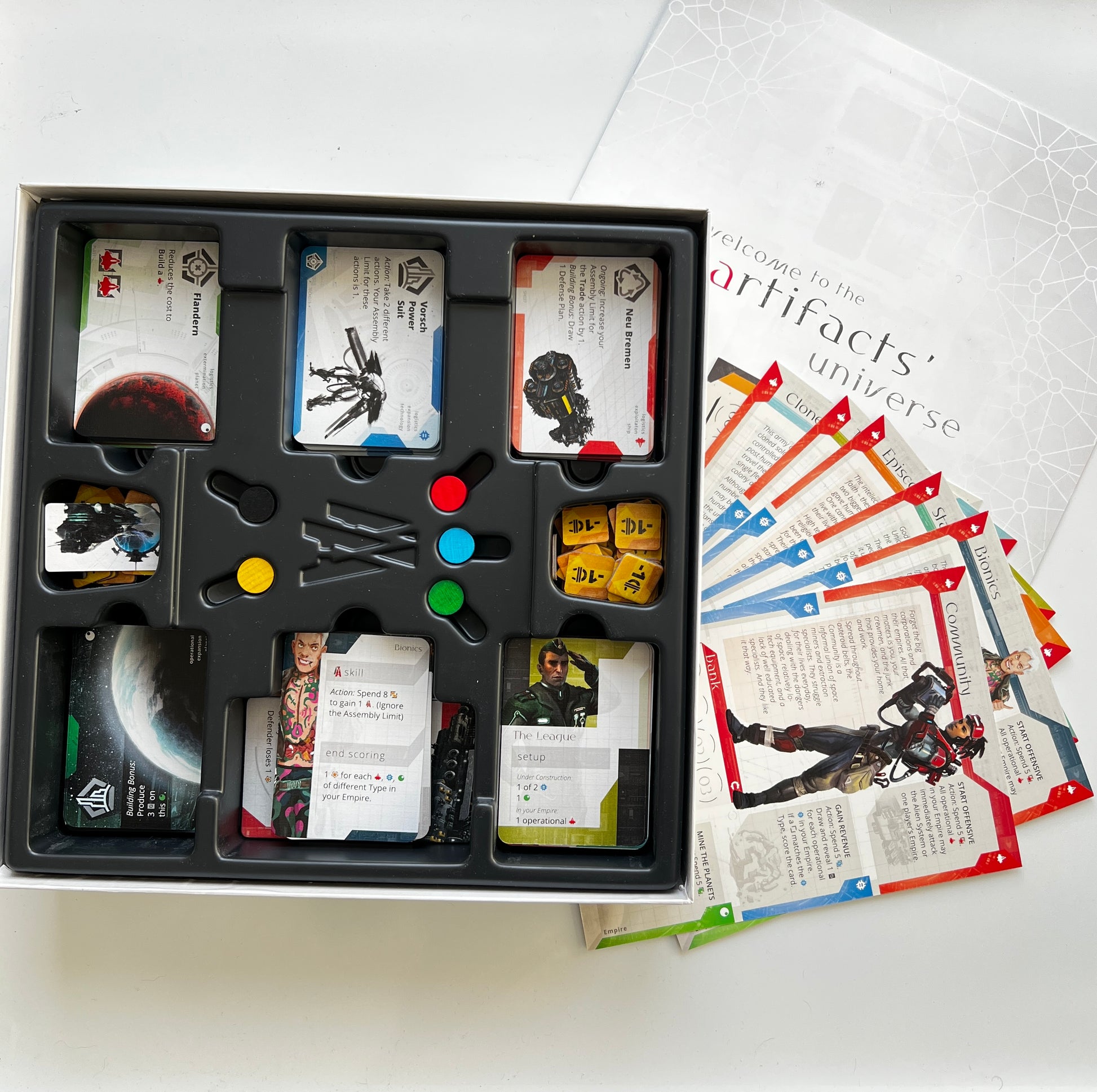 Utforsk, ekspander og erobre galaksen i det intense kortdrevne strategispillet Alien Artifacts! Dette sci-fi-brettspillet lar deg bygge din egen romsivilisasjon, utforske fjerne planeter og oppdage eldgamle utenomjordiske artefakter. Perfekt for både erfarne brettspillere og sci-fi-entusiaster!