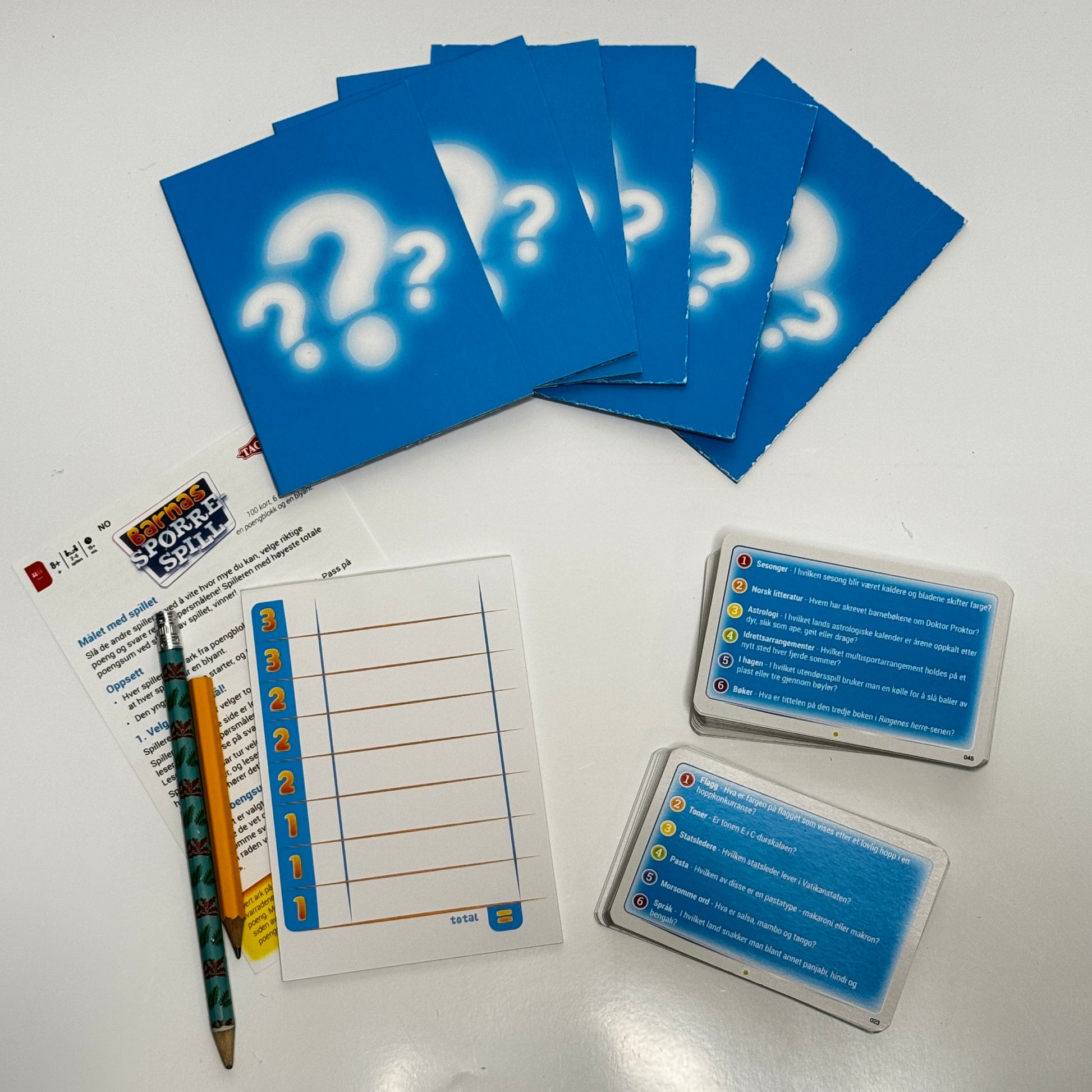 I Barnas Spørrespill får barna teste kunnskapen sin gjennom en rekke varierte spørsmål tilpasset deres alder. Spillet kombinerer læring og underholdning, og gir barna en sjanse til å briljere med det de kan – samtidig som de lærer nye ting underveis. Perfekt for familiehygge, spillkvelder og som et alternativ til tradisjonelle quizspill for voksne.