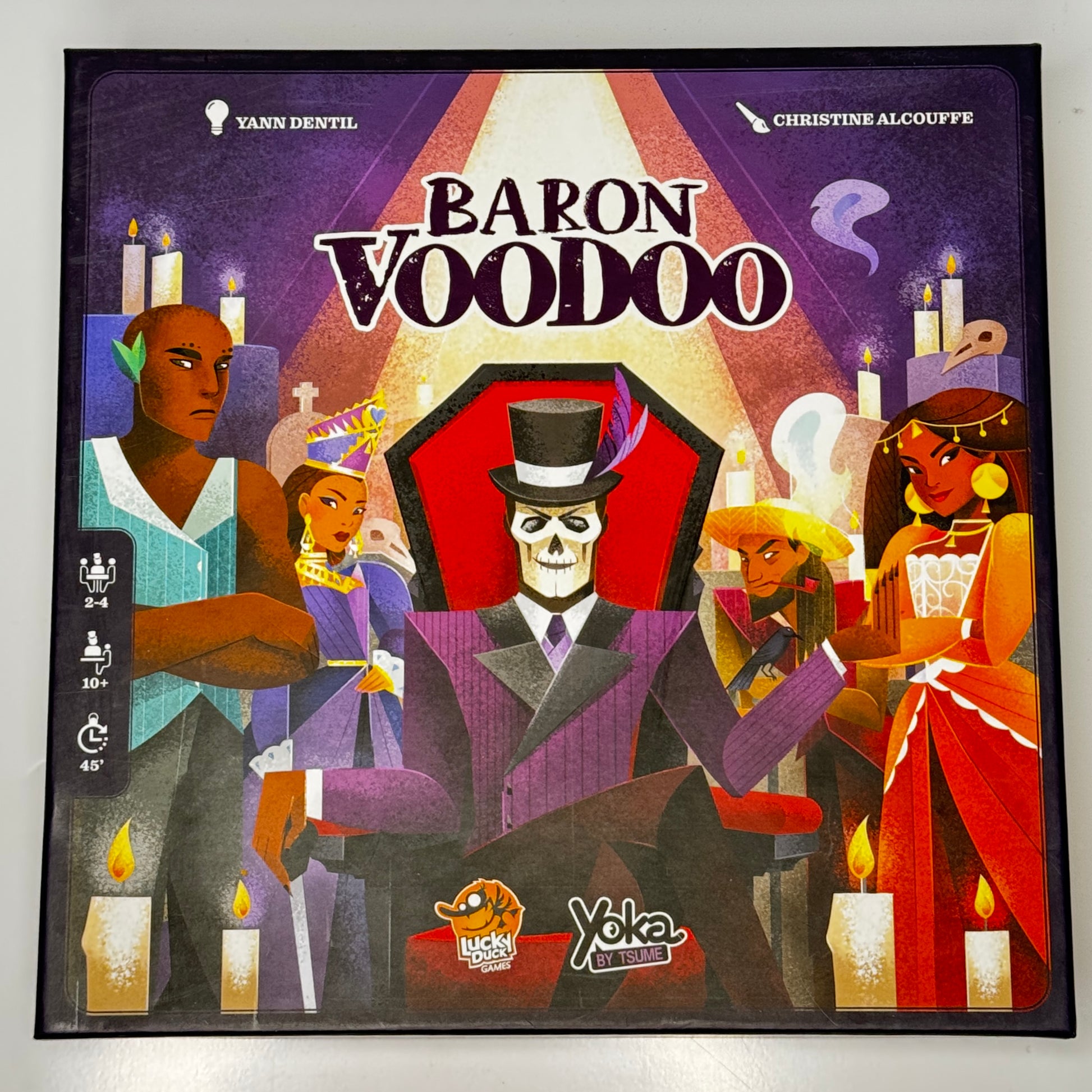 I Baron Voodoo konkurrerer 2–4 spillere om å kontrollere åndene fra de døde i et fargerikt og strategisk brettspill satt i voodoo-universet. Ved hjelp av terninger, planlegging og spesialferdigheter må du fange sjeler og manipulere brettet for å få flest poeng.