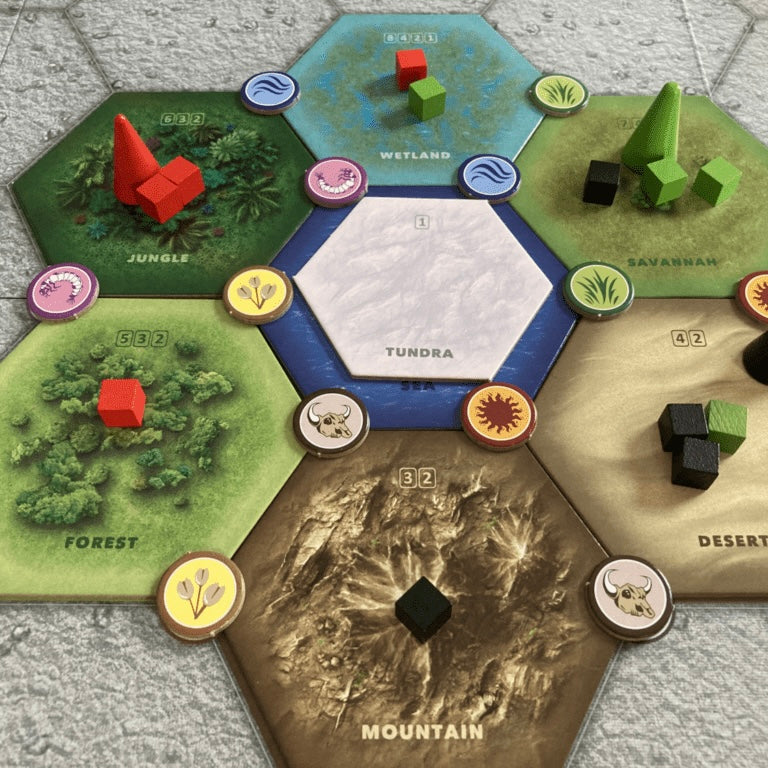 Dette er et dypt strategisk og tematisk spill som kombinerer områdekontroll, handlingsvalg og tilpasning, med en sterk følelse av evolusjon og konkurranse. Hver beslutning teller – fra tilpasning til ressursknapphet, til å dominere ulike habitater på kartet.