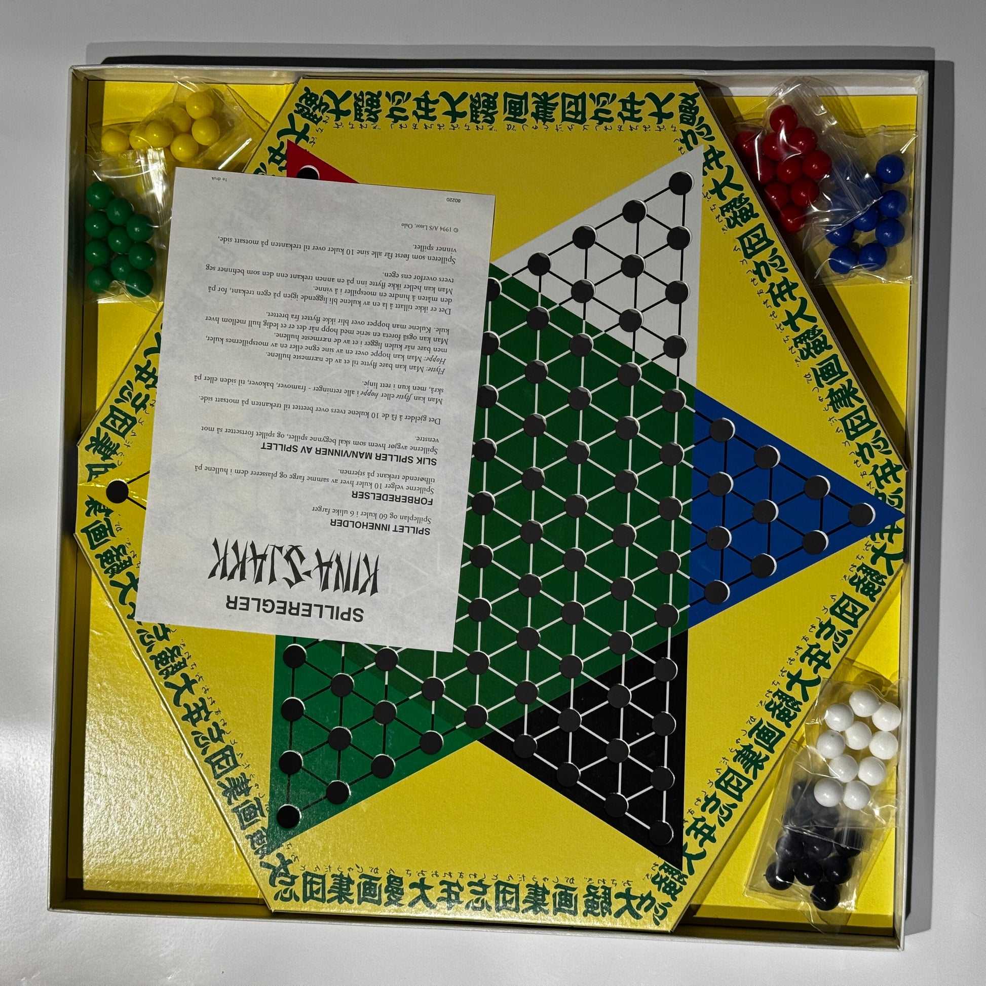 I Kina-sjakk gjelder det å få alle brikkene dine trygt over på motsatt side av stjernebrettet før motspillerne gjør det samme. Du flytter én og én brikke, eller hopper over egne og andres brikker i kjeder for å komme raskere frem. Spillet er enkelt å lære, men byr på overraskende mye taktikk når dere begynner å planlegge lange hopperekker og blokkere hverandre. Perfekt som et rolig, men spennende familiespill som passer både barn og voksne.