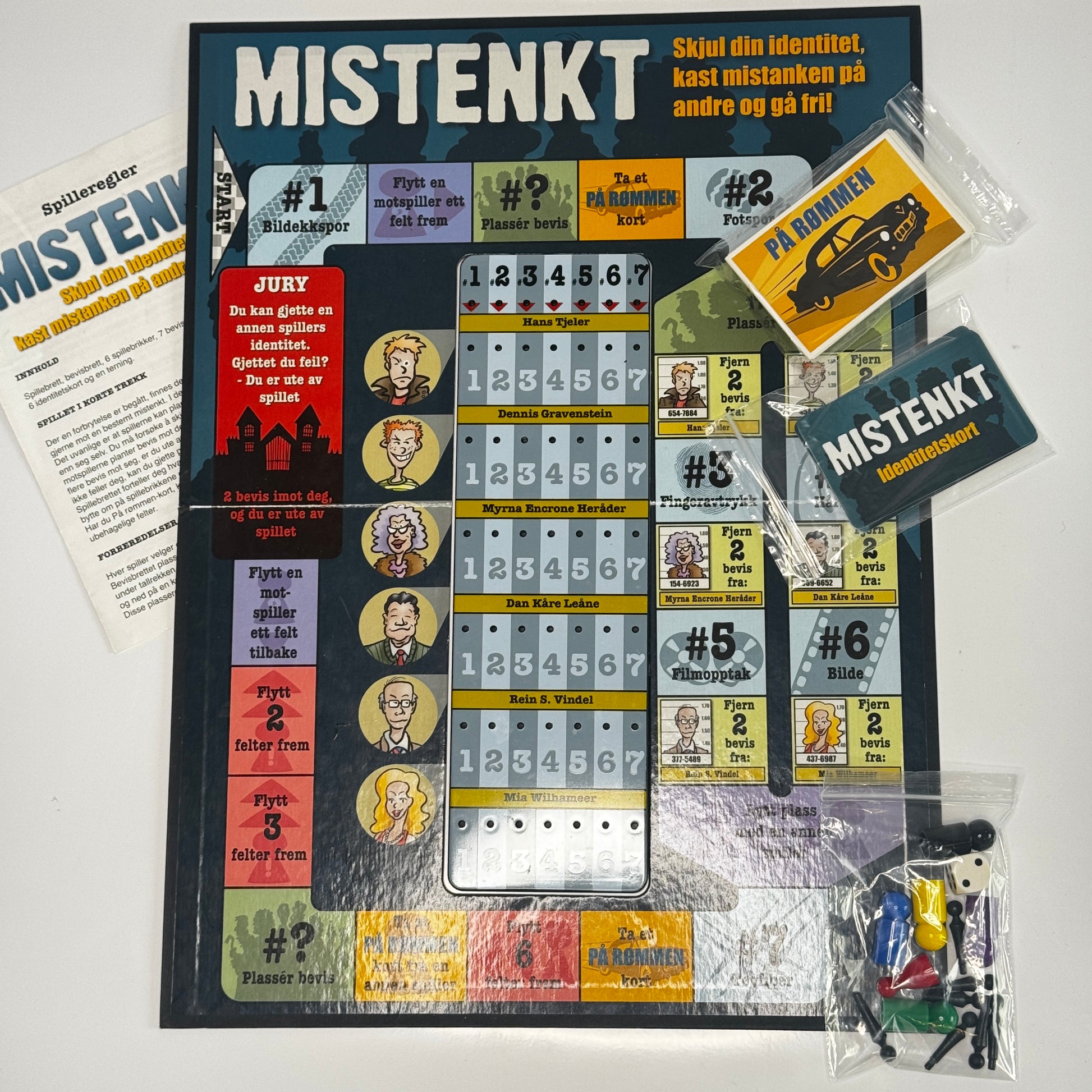 Stikkord: Mistenkt, bløffespill, identitetsspill, strategi, familiespill, norsk spill, Damm, Egmont, mordmysterium, partyspill