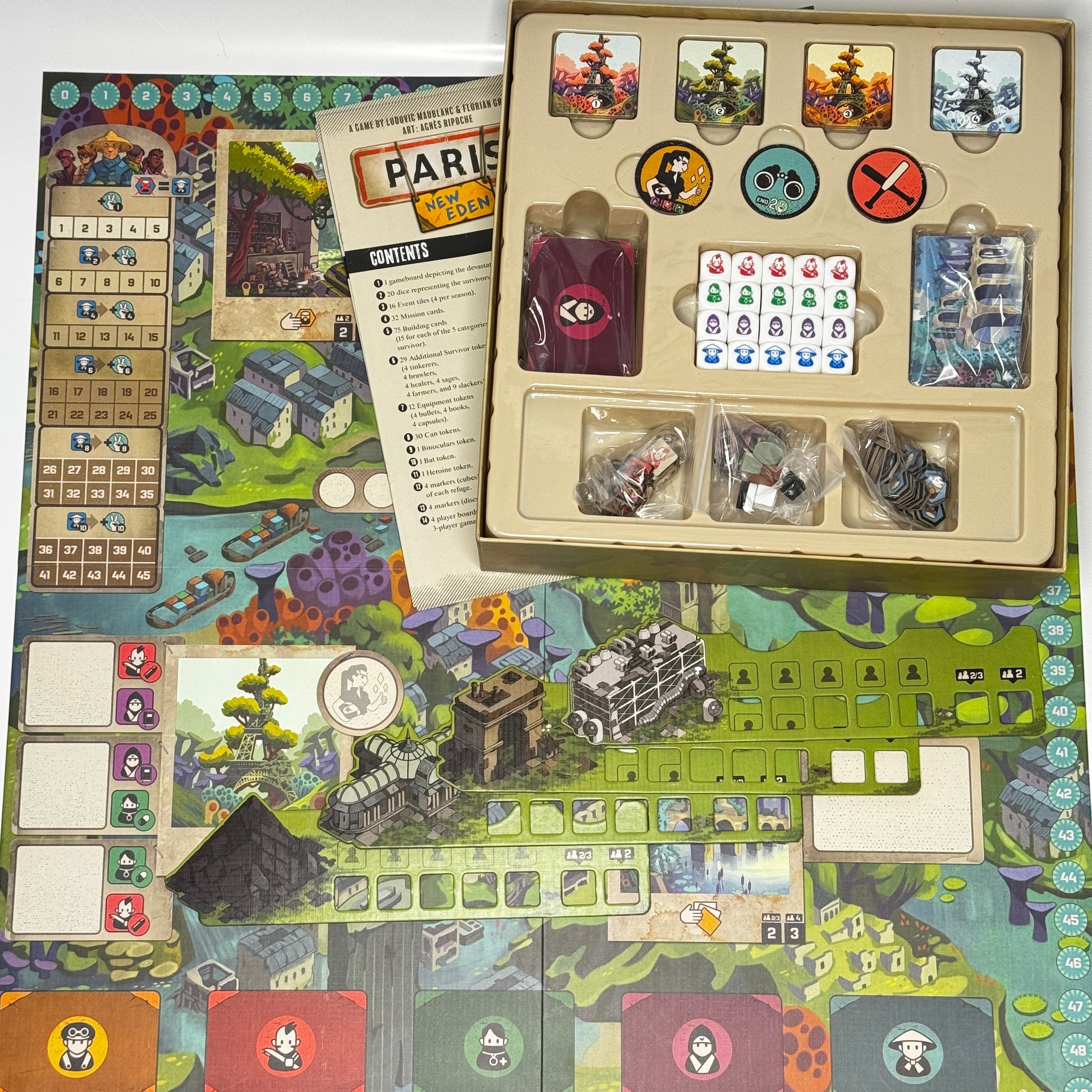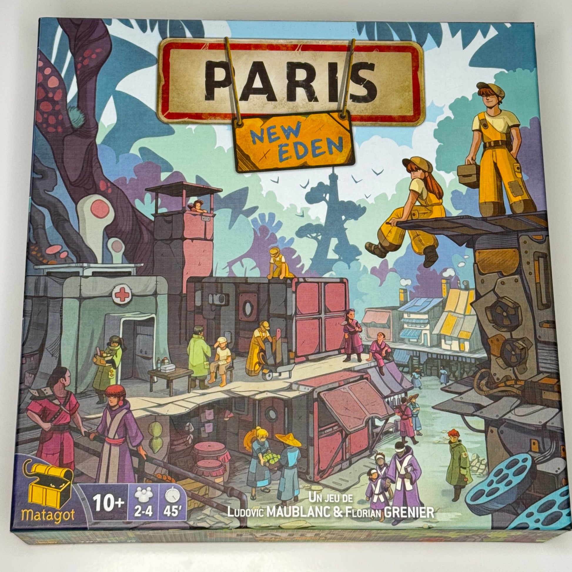 I Paris: New Eden leder du en gruppe overlevende og skal samle ressurser, tiltrekke spesialister og gjenreise sivilisasjonen. Med terningdrafting og flere strategiske valg, byr spillet på både dybde og variasjon i hver runde.