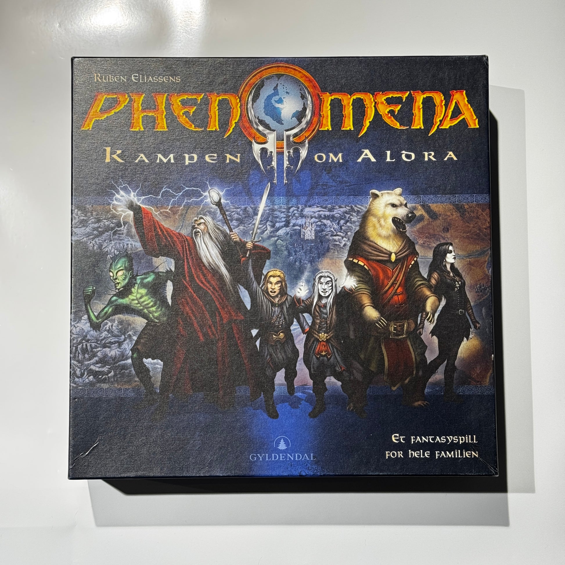 Stikkord: brettspill - Gyldendal - Phenomena - Kampen om Aldra - Ruben Eliassen - fantasy - familiespill - taktisk - samarbeid - konkurranse - 2000-tall